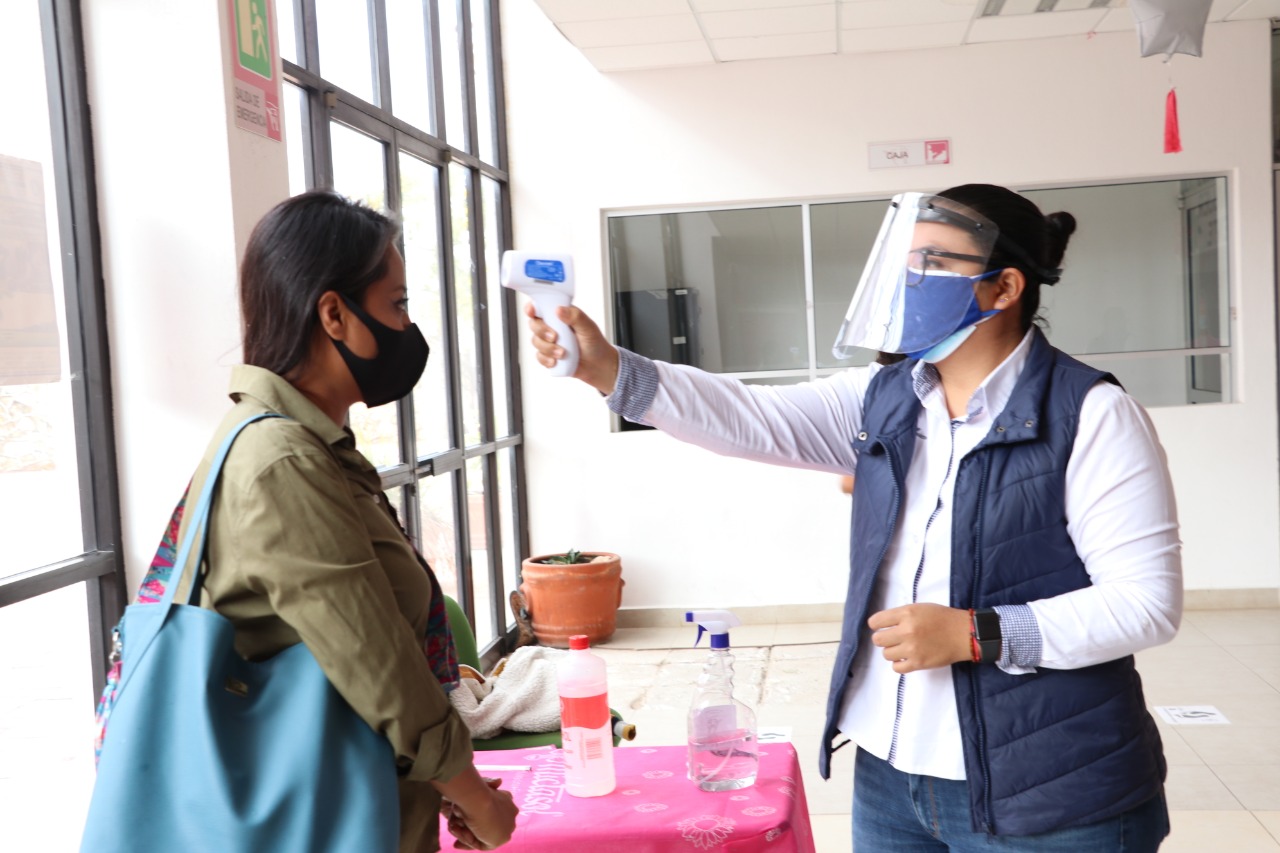 Se cuenta con tapetes sanitarios, se brinda gel-alcohol y se toma la temperatura, entre otras acciones.