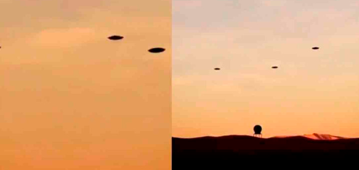 En el clip de poco más de un minuto que ya circula en redes sociales, se observa a tres platillos voladores volando a lo lejos en el horizonte, cuando poco a poco comienzan a acercarse haciendo un extraño ruido al moverse.